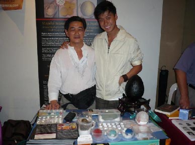 John Tan at the stand displaying mustika pearls |